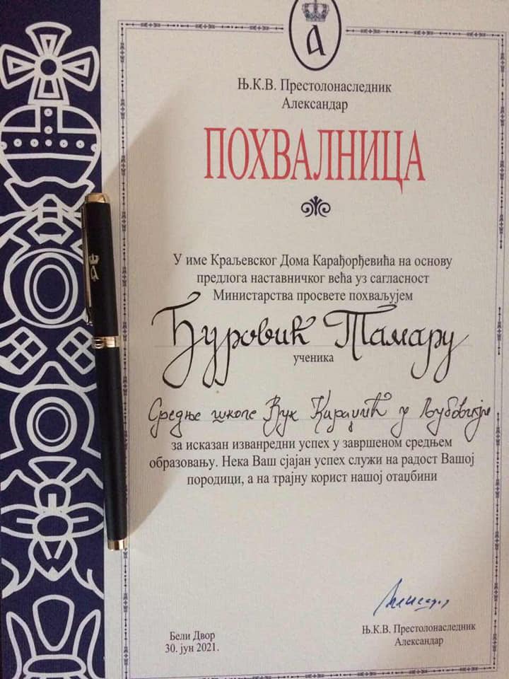 “Велика је част понети титулу Ђака генерације. Ово признање је потврда мог великог труда и залагања у протекле четири године, као и моје жеље да своју школу и општину свуда представим у најбољем светлу. Желим да се захвалим својој породици на безусловној љубави и подршци, својим професорома, који су се трудили да израстемо у свестране и образоване личности, као и пријатељима, који су увек били уз мене. Млађим генерацијама желим да буду упорни, јер се упорност и труд исплате, и увек гладни знања, јер знање је моћ. Желим да моја школа изнедри још много интелектуалаца, који ће бити понос наше Љубовије.”Тамара, верујемо да ћеш са истим успехом наставити свој професионални пут и развој. Много среће и успеха ти желимо!