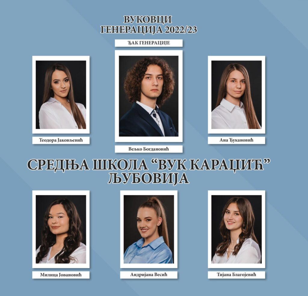 Носиоци Вукове дипломе у школској 2022/23. години су: Теодора Јаковљевић, Тијана Благојевић, Милица Јовановић, Ана Ђукановић, Андријана Весић и Вељко Богдановић.