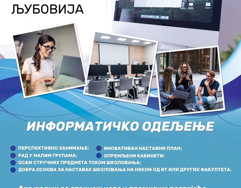 ВишеПРИЈАВЉИВАЊЕ ЗА ПОЛАГАЊЕ ПРИЈЕМНОГ ИСПИТА: ПОНЕДЕЉАК, 4.4.2022. у 8 часова до ЧЕТВРТКА, 7.4.2022. у 24 часа ЕЛЕКТРОНСКИМ ПУТЕМ ПРЕКО ПОРТАЛА МОЈА СРЕДЊА ШКОЛА ПРИЈАВЉИВАЊЕ ЗА ПОЛАГАЊЕ НЕПОСРЕДНО/ЛИЧНО У СРЕДЊИМ ШКОЛАМА КОЈЕ ОРГАНИЗУЈУ И СПРОВОДЕ ПРИЈЕМНЕ ИСПИТЕ ИЛИ КОЈЕ УПИСУЈУ УЧЕНИКЕ У ОДЕЉЕЊА ЗА УЧЕНИКЕ СА ПОСЕБНИМ СПОСОБНОСТИМА ЗА РАЧУНАРСТВО И ИНФОРМАТИКУ: ЧЕТВРТАК, 7.4.2022. и ПЕТАК, […]