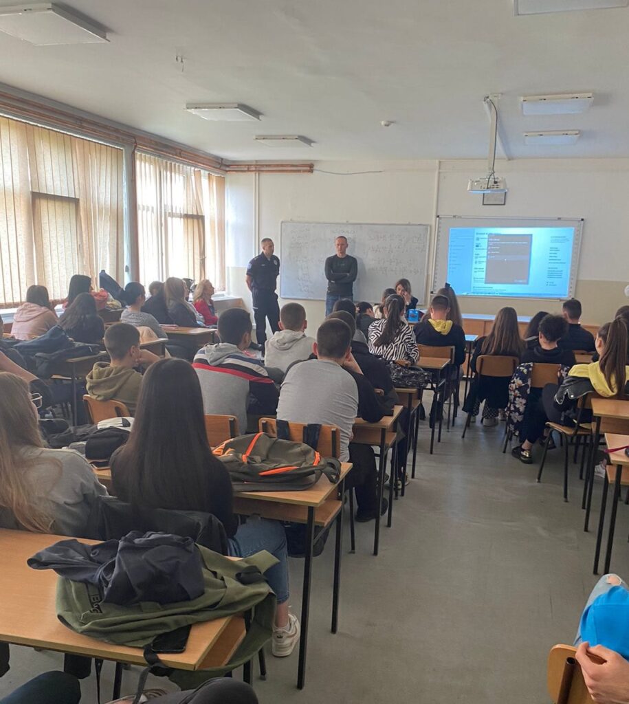 Предавање је одржано за ученике од првог до четвртог разреда, у обе смене. Ученици су кроз различите примере и ситуације, презентацију, дискусију и разговор са припадницима МУП-а упознати са наведеним темама са акцентом на потреби да се о овим проблемима говори, извештава, али и консултује са родитељима и стручњацима.Кроз ову врсту предавања и дискусија настојимо да подигнемо свест деце о присуству вршњачког насиља, као и да будемо део њиховог безбедног и здравог одрастања. Један од наших задатака је да унапредимо комуникацију како бисмо побољшали међусобно поверење и на време идентификовали конкретне проблеме. Хвала представницима МУП-а!