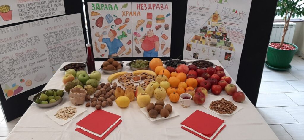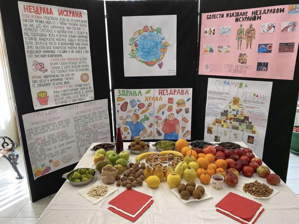 Поводом Светског дана хране наши ученици су припремили изложбу здраве хране у холу школе.Са изложених радова могли су да прочитају информације о правилној и неправилној исхрани,пирамиди исхране,последицама неправилне исхране…Док смо разговарали о овим темама,сви заједно смо дегустирали здраву храну!